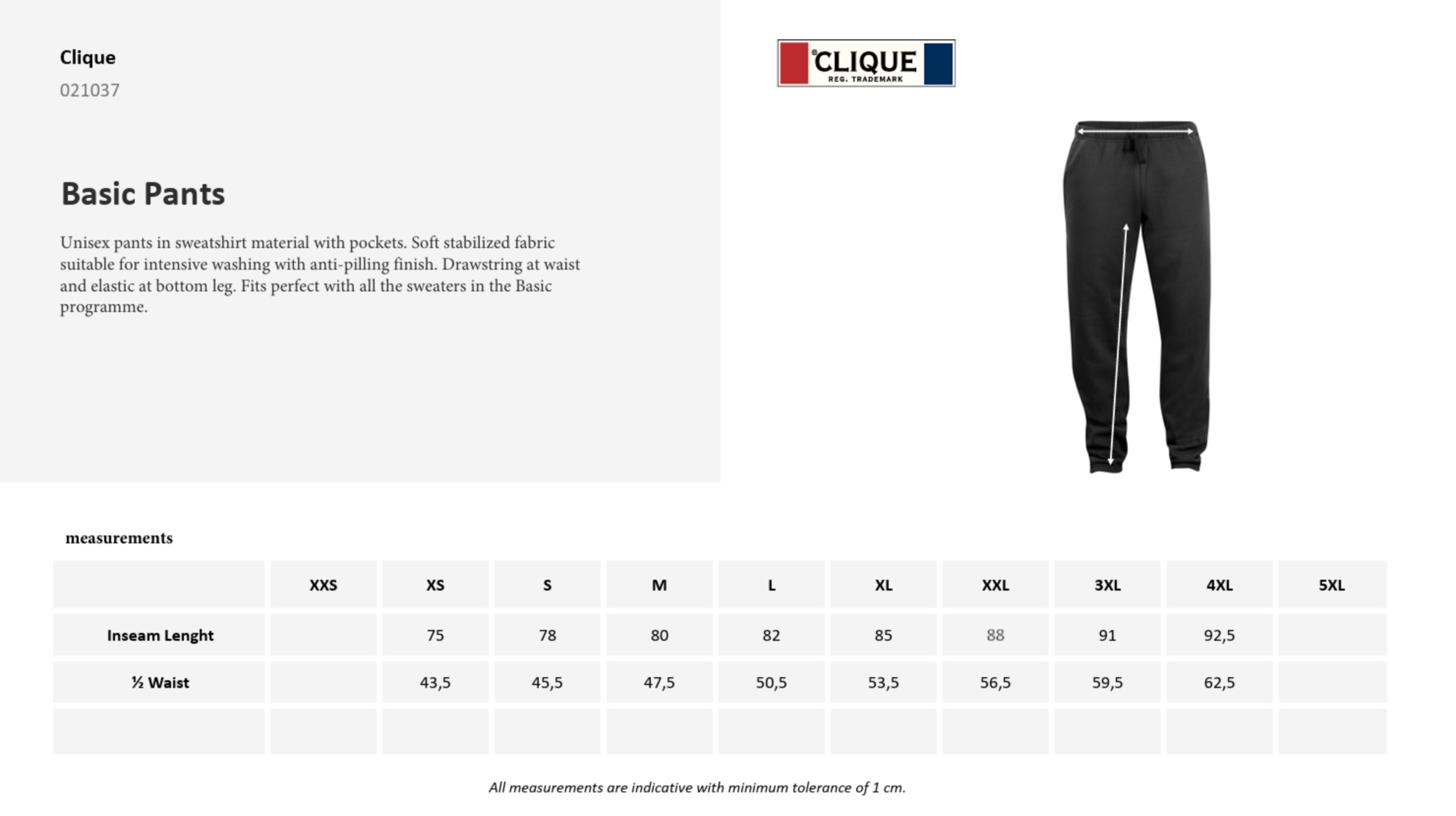 Unisex joggebukse med børstet innside. To lommer. Snor i midjen og ribb i nederkant. Passer utmerket til alle overdeler i Basic serien. Bukse inkluderer logo trykket på venstre lår.